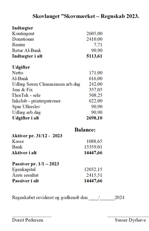 Medlemmernes indbetalinger – kontingenter og donationer – går ubeskåret til vedligehold og udvikling af Skovmærket.